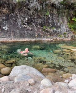 Vi hadde ved siden av å gå turer også et ønske om å bade i en av kulpene i elvene som renner gjennom området og å se villhester (Garrrano Ponies). Vi fikk begge ønskene oppfylt. Krystallklart men kaldt vann var en forfriskende opplevelse. Og de vakre villhestene viste seg å være mere tamme enn vi trodde, slik at vi kom nært innpå dem.